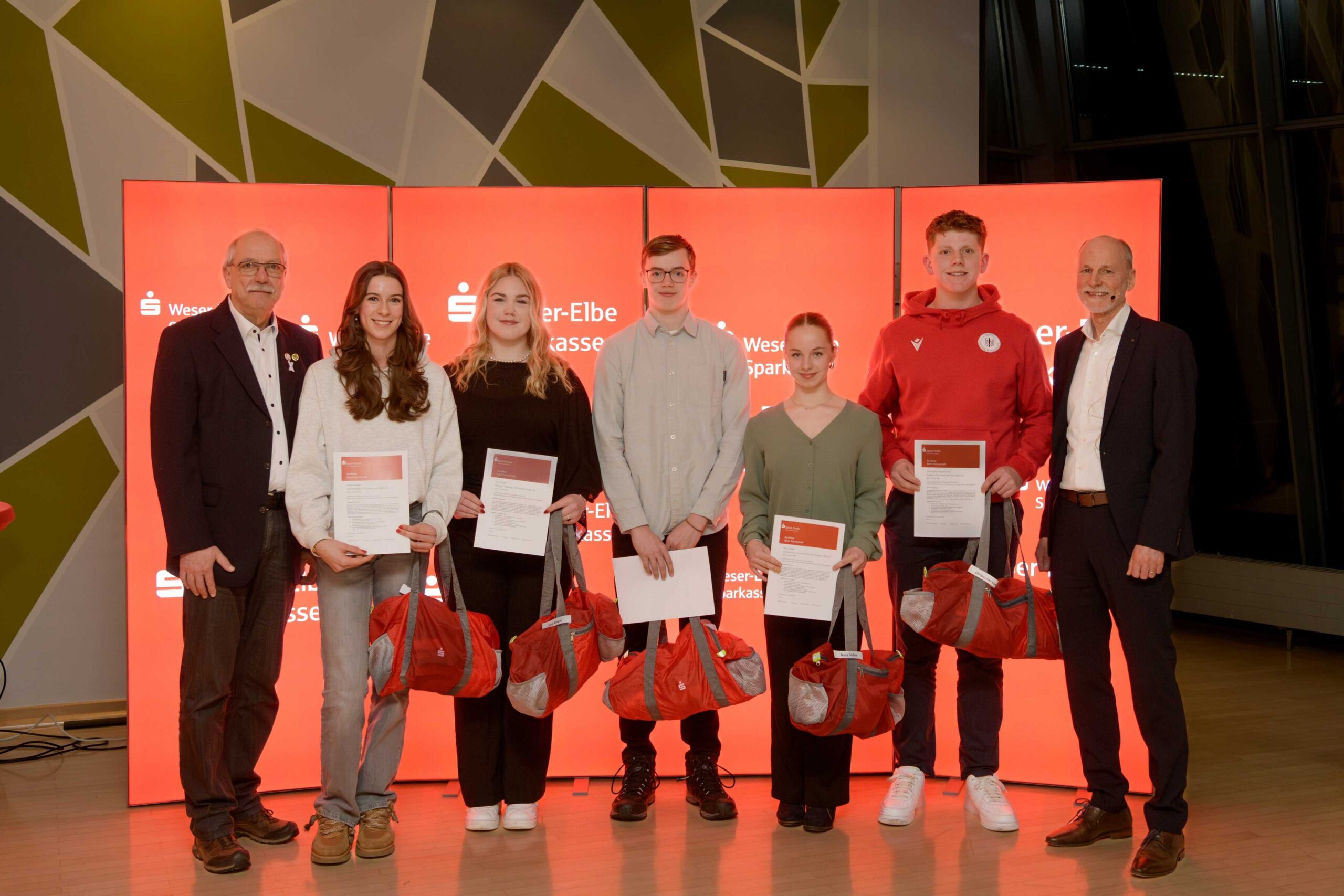 Im Jahr 2026 vergibt die Sparkasse zwei Sport-Stipendien an die Ruderin des TSV Otterndorf 1862 e. V., Aenne zum Felde, und an den Lateintänzer der TSG Bremerhaven e. V., Alexandru Negel. Zehn weitere Nachwuchstalente aus dem Landkreis Cuxhaven und der Seestadt Bremerhaven erhalten jeweils eine Sport-Patenschaft. Der Breitensport profitiert 2025 erneut sechsstellig von der WESPA Sport-Förderung.